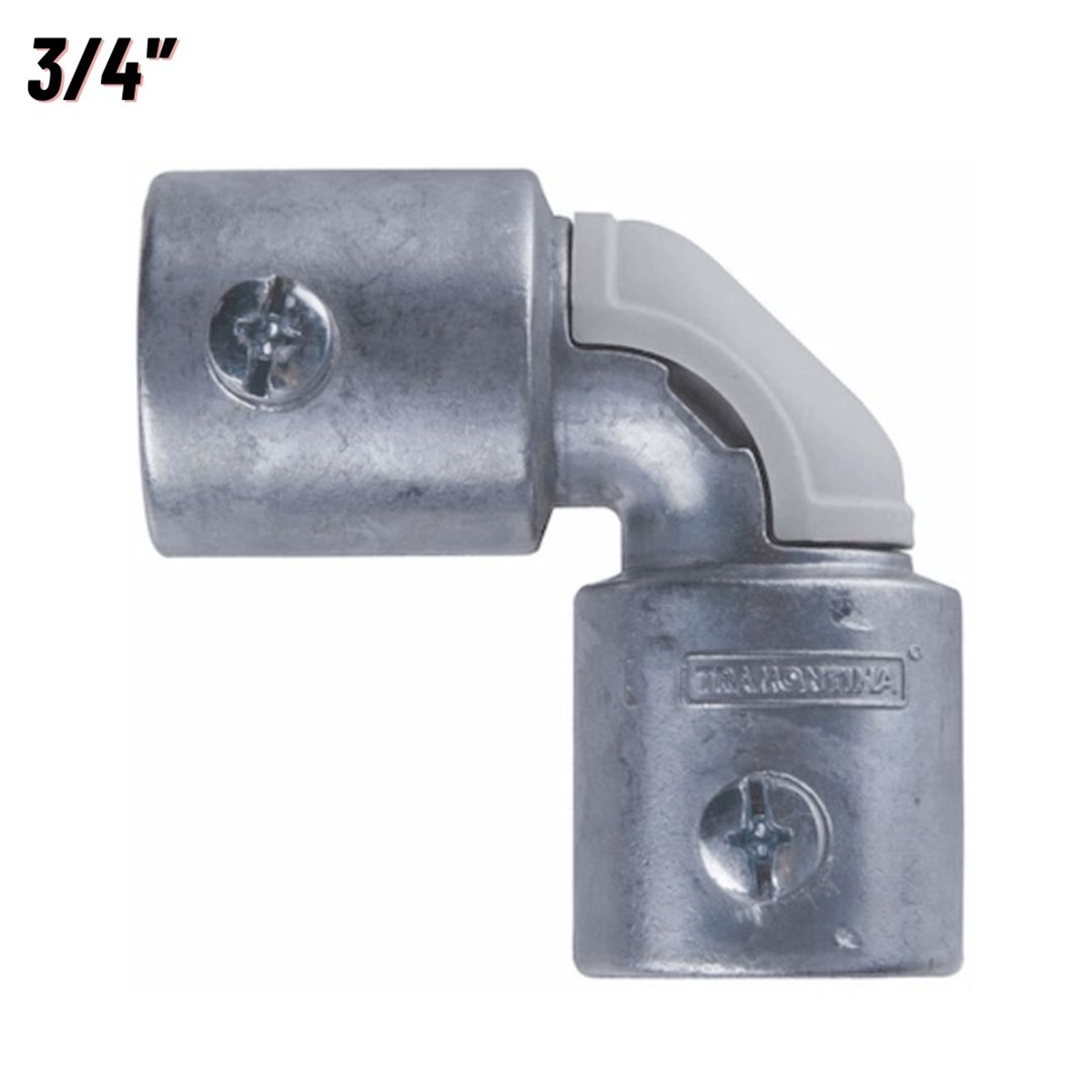 1 UNIDADE = JOELHO CONECTOR CURVO EM ALUMÍNIO SEM ROSCA 3/4''