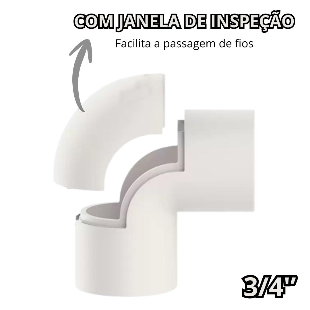 Possui janela/visita (abertura destacável) para inspeção, o que facilita a inserção dos fios e cabos em curvas.